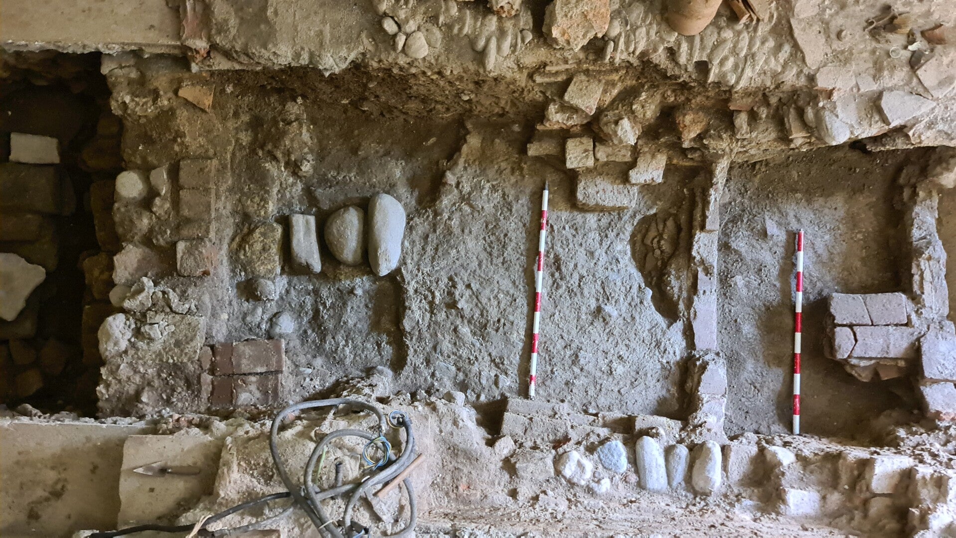 La localización de la muralla y del torreón en la intervención realizada en 2018 articuló el espacio interior de la planta baja del edificio. Los sondeos en el local pretenden corroborar la proyección de las estructuras medievales hacia el Noreste cruzando longitudinalmente el espacio en paralelo a la línea de fachada actual categorizando los espacios intramuros y extramuros.